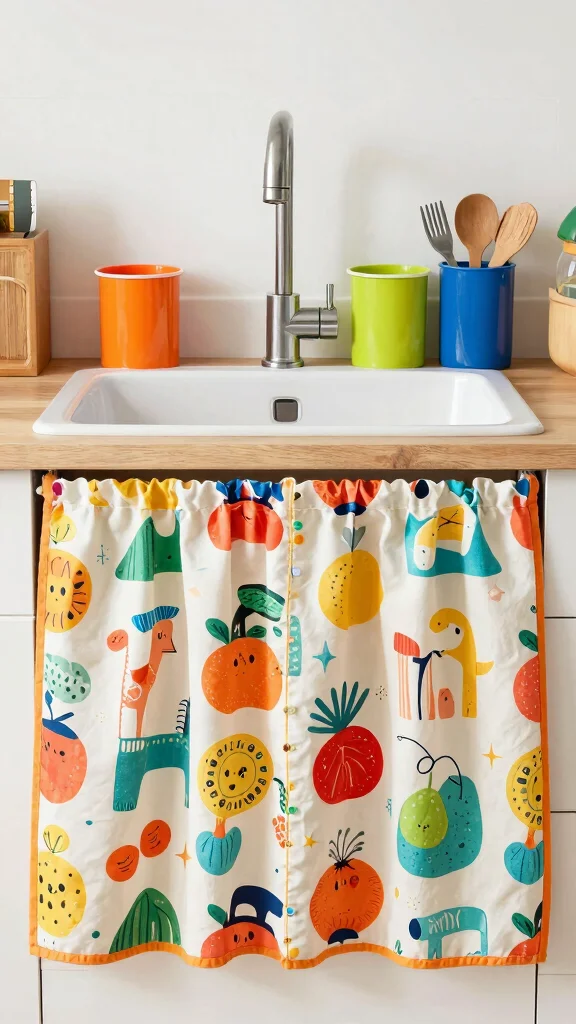 Add a playful touch to your kitchen with whimsical printed fabrics for your sink curtains. Whether featuring cute fruits, herbs, or abstract designs, these fabrics can infuse fun into your decor. Allow your personality to shine through with prints that evoke joy each time you enter the room. This lighthearted approach is perfect for family-friendly kitchens or spaces with a cheerful atmosphere.