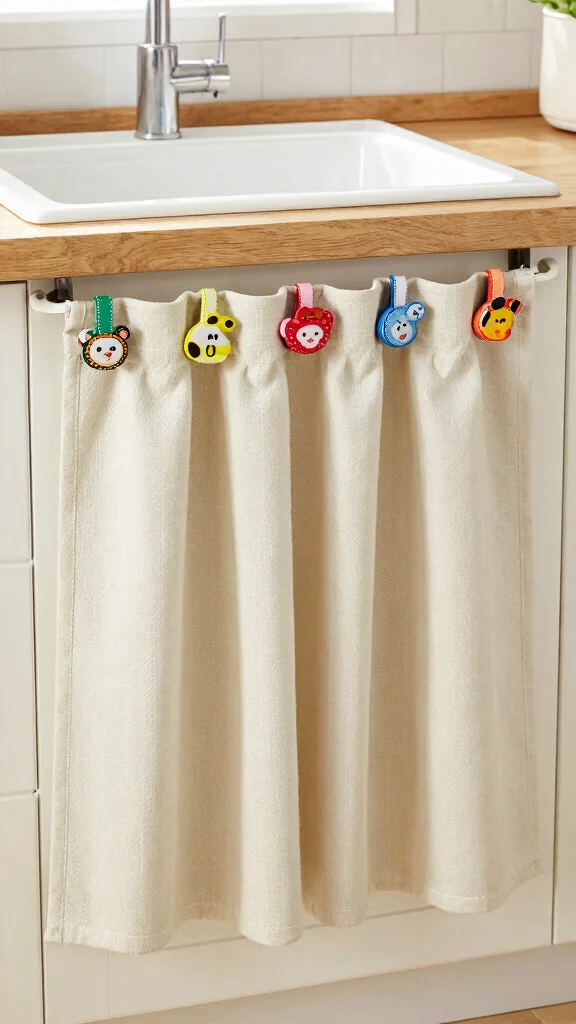 Enhancing your kitchen curtains below the sink with fun and functional tie-backs adds both style and practicality. These accessories keep the curtain neatly out of the way when you need easy access while introducing an additional design element. Choose from decorative rope, fabric ties, or even magnetic options for a modern twist. This small detail can elevate the sophistication of your curtains.