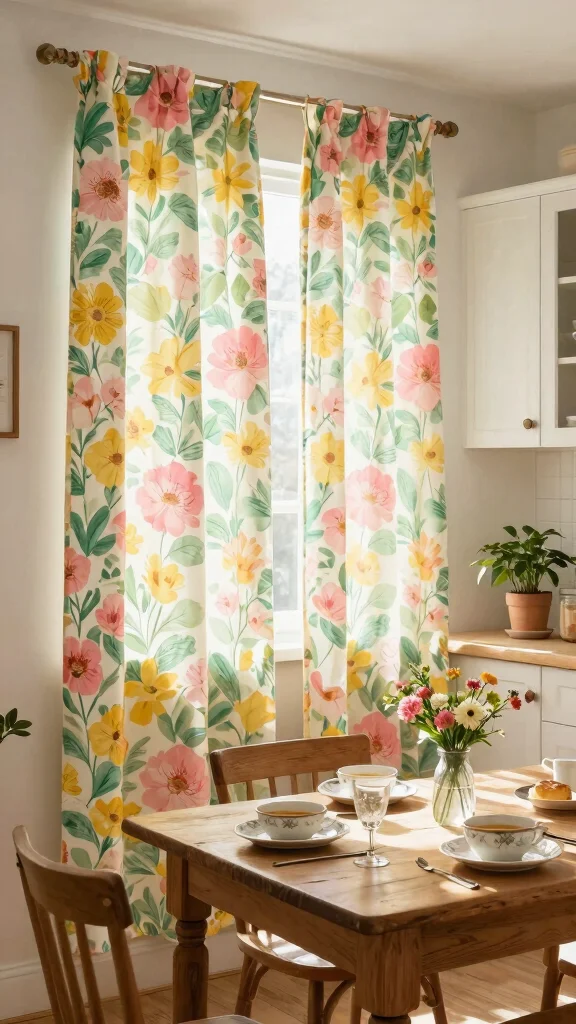 To bring this look to life, consider layering floral curtains with sheer panels for added texture. You can also explore budget-friendly floral fabrics at local craft stores or online retailers, ensuring you find the perfect match for your kitchen decor.