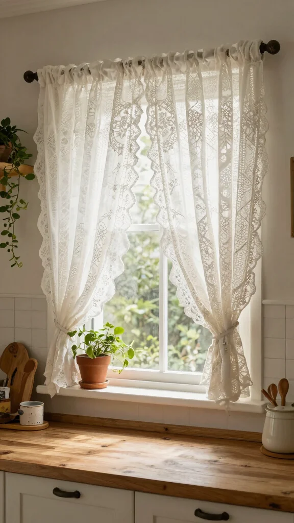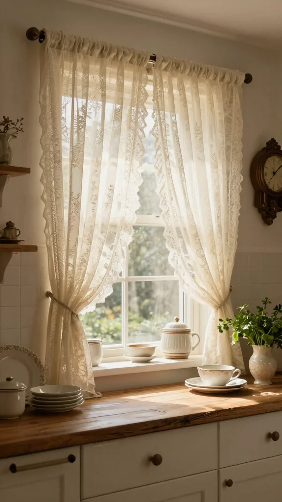 Lace curtains enrich any kitchen, blending beautifully with various decor styles to create a warm and inviting environment.