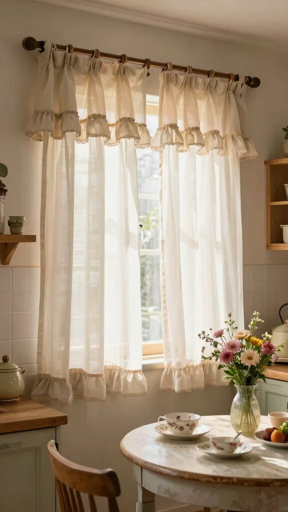 Sheer curtains can elevate your kitchen, creating a bright and sophisticated feel that complements your vintage style.