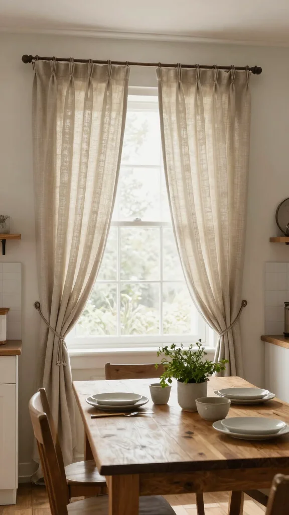 Opt for natural fiber curtains to create an environmentally friendly and chic look in your kitchen. Fabrics like jute and hemp bring a rustic touch while being durable and easy to maintain. Their unique textures can elevate your kitchen decor and align with sustainable living efforts.