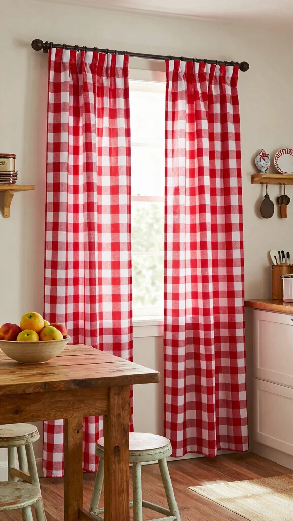Gingham curtains evoke a cozy country vibe, making them a perfect choice for your kitchen. The playful checkered patterns add whimsy and charm, effortlessly balancing out busier decor elements. Soft neutral tones paired with gingham can create a harmonious atmosphere, inviting warmth into your space.