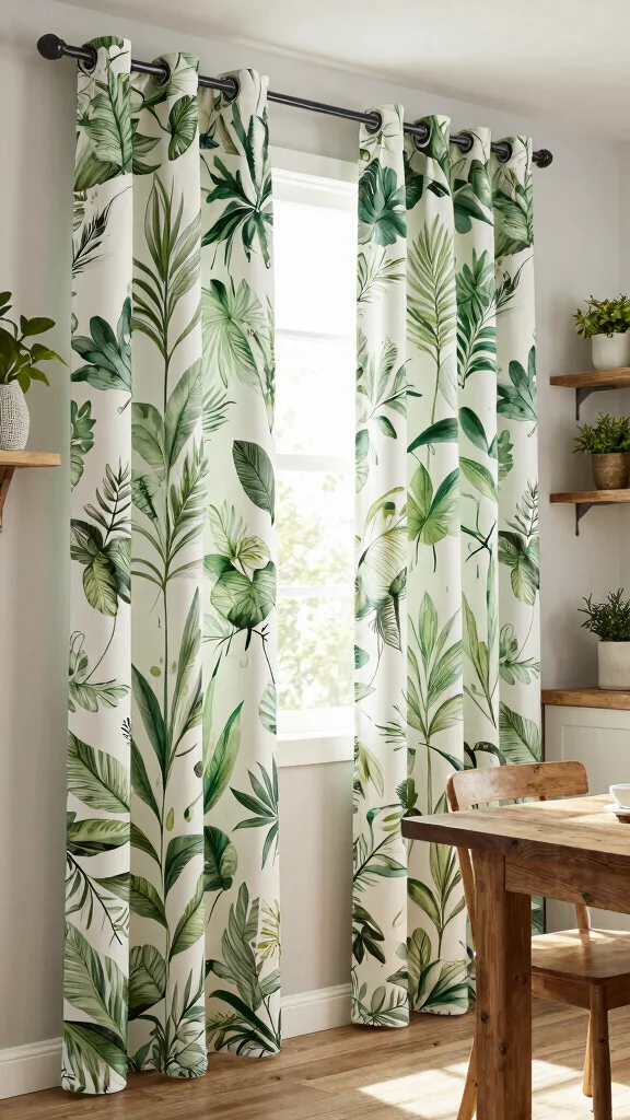 Nature-inspired curtains breathe new life into your kitchen, enhancing its vintage decor and creating a serene environment.