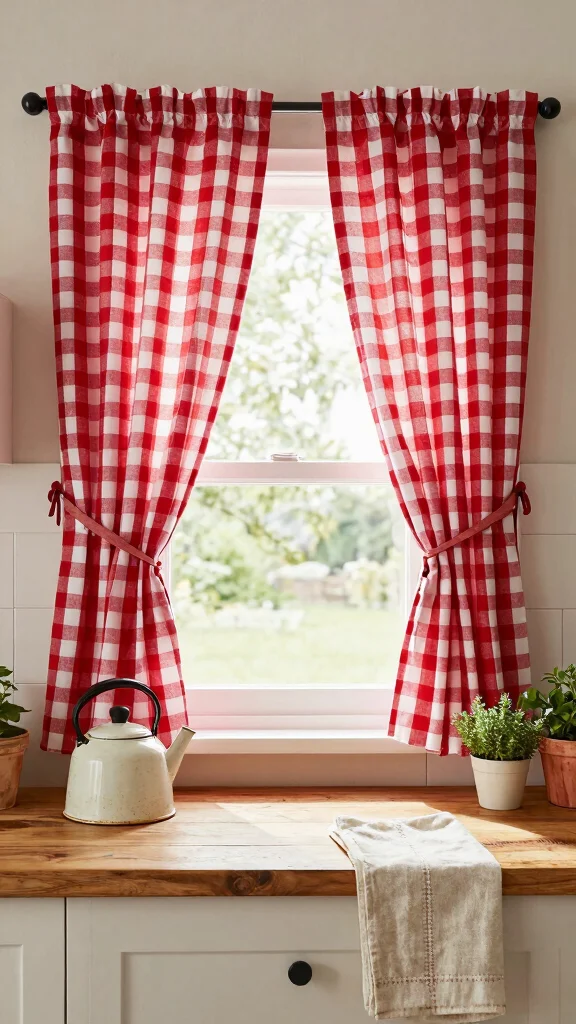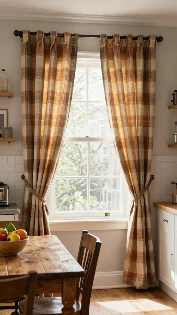 Rustic plaid curtains create a homely atmosphere, making your kitchen a warm gathering space for family and friends.