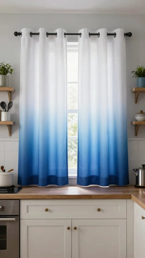 Ombre curtains add a modern twist to classic farmhouse decor, making your kitchen both cozy and stylish.