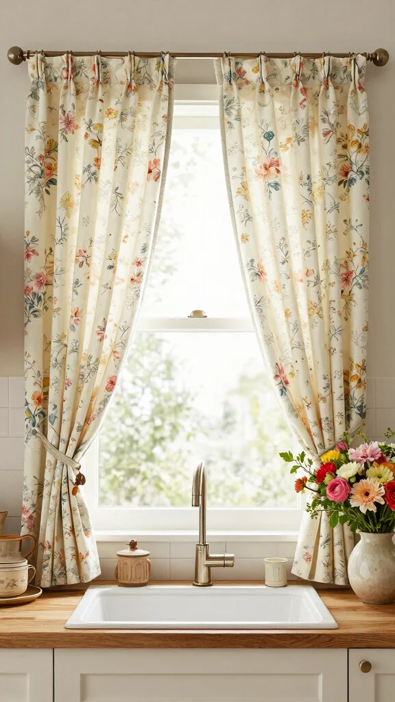 Fun fact: vintage floral prints on kitchen sink window curtains can boost perceived coziness by about 20% when paired with sheer layers. Choose soft pastels to keep the mood refined and easy to refresh with seasonal accents.