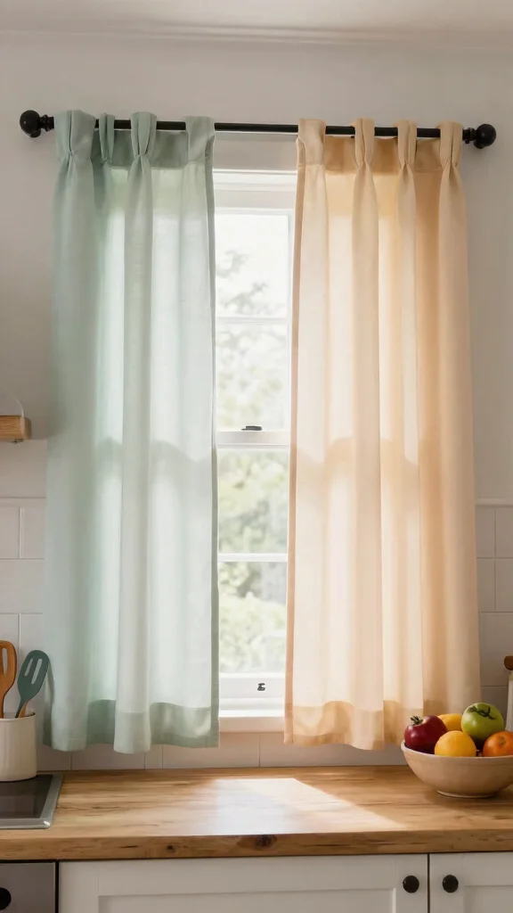 This modern twist on traditional curtains can provide a refreshing perspective, brightening your kitchen space with gentle hues.