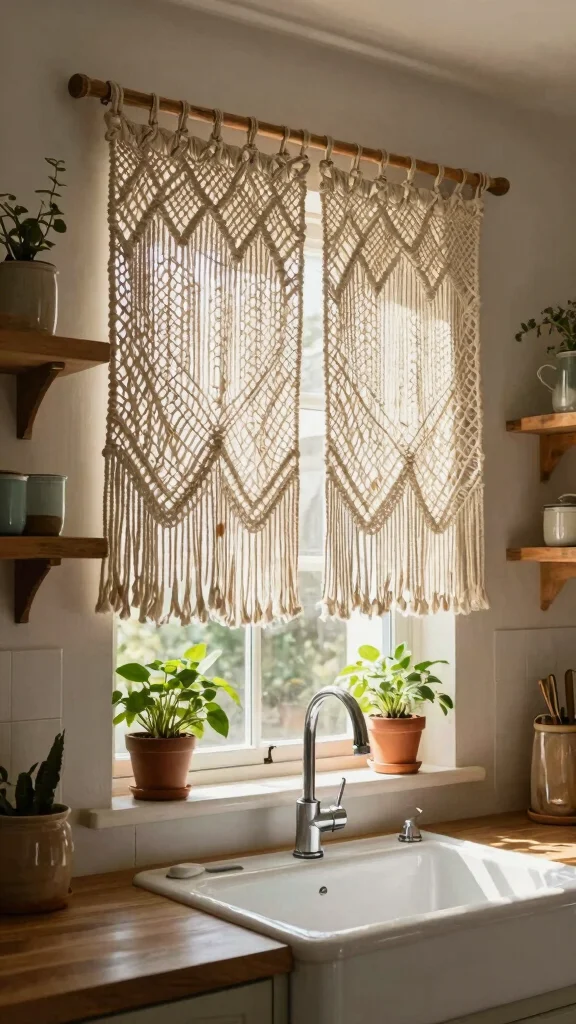 Macrame curtains add a creative flair to your kitchen, making it feel personalized and inviting.