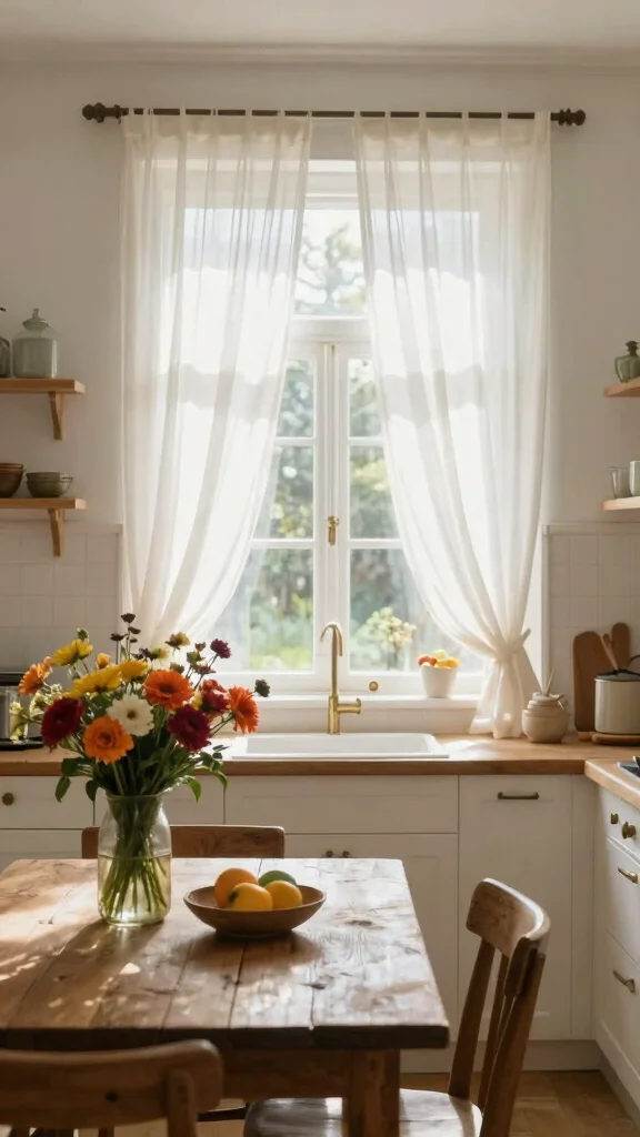 Sheer flowing panels create a magical ambiance in your kitchen, making it feel serene and inviting.
