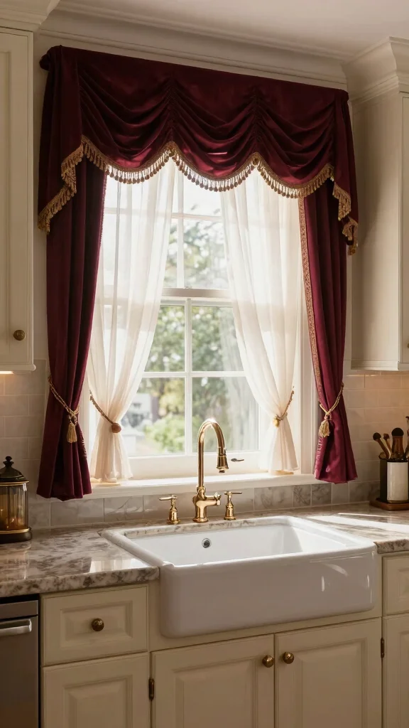 If you’re looking to add a touch of luxury to your small kitchen, elegant swags are an ideal choice. These draped styles introduce softness and sophistication, transforming a standard window into a stunning focal point. Choose rich fabrics in deep colors or ornate patterns to elevate your kitchen’s aesthetic. Swags can be beautifully paired with sheer panels, allowing light to shine through while adding an element of elegance.