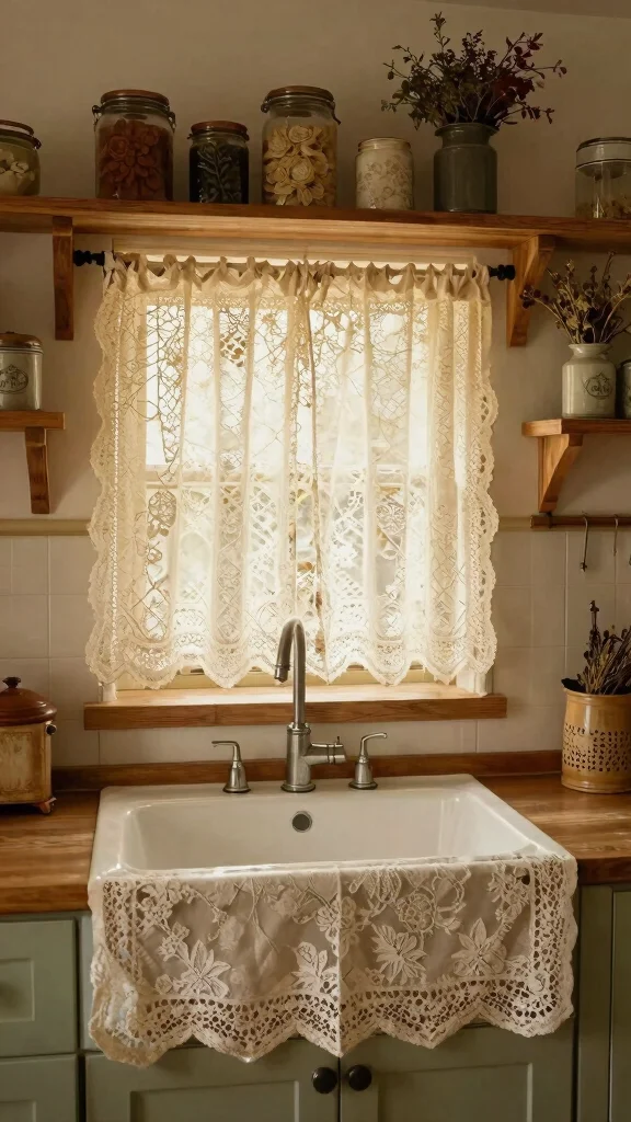 Vintage lace curtains offer a romantic and timeless appeal, adding character to your small kitchen. These delicate designs soften harsh lines, providing a feminine touch that beautifully complements rustic or country-style decor. Look for lace with intricate or understated patterns to enhance charm without overwhelming the space.