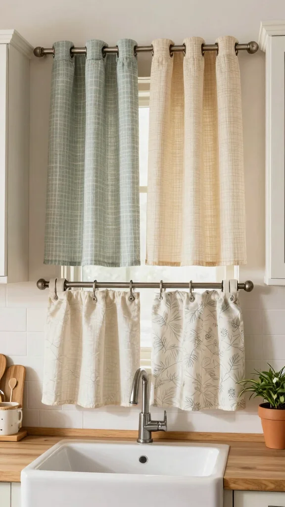 Layering curtains can add depth and richness to your kitchen window decor. You can combine sheer curtains with heavier drapes for both privacy and light control. This technique allows you to have versatility throughout the day. Choose complementary colors or textures for a coordinated look. Layering also offers the opportunity to change your kitchen’s mood with minimal effort.
