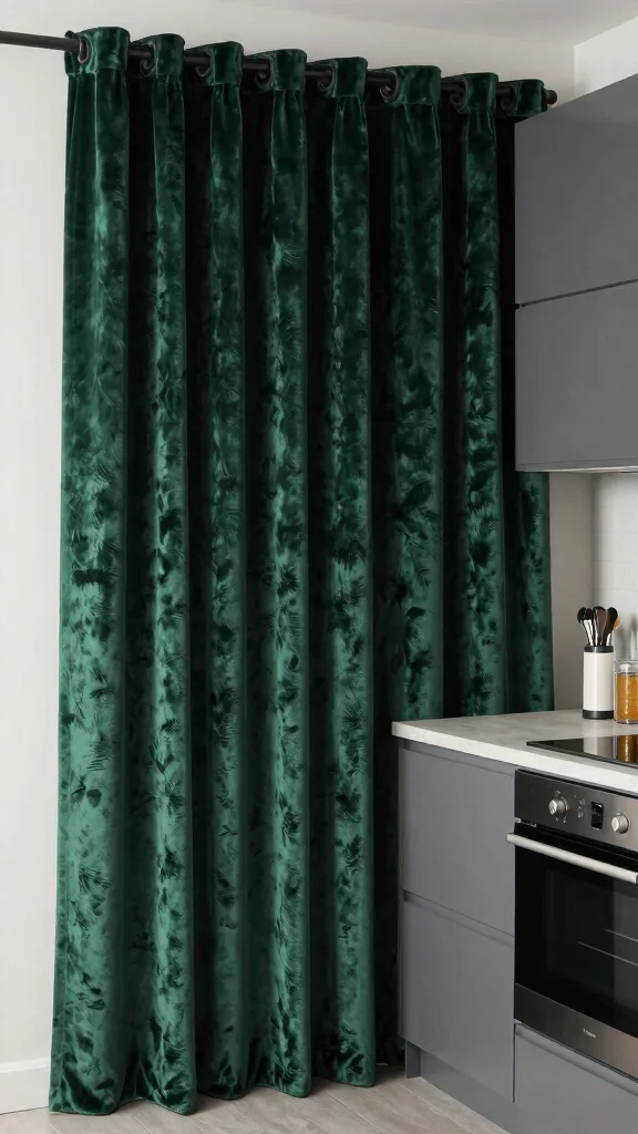 Consider materials like velvet or corduroy for half curtains that are not only eye-catching but also add a luxurious feel to compact kitchens. Pair textured curtains with neutral tones to balance their bold appearance. They can be hung from a simple rod or a decorative one for added elegance.