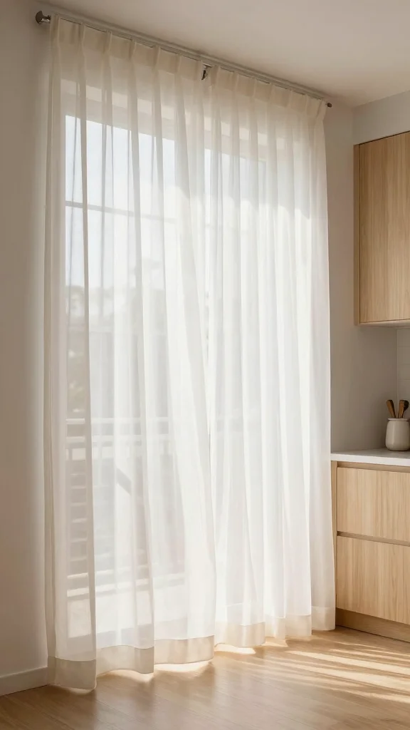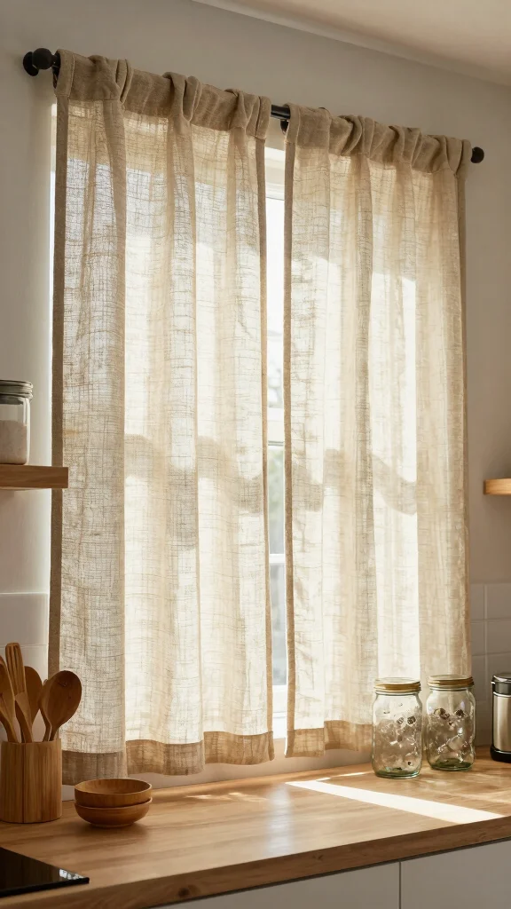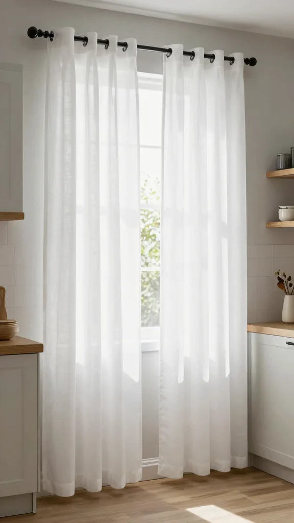 Sheer curtains can soften the overall kitchen decor, creating a welcoming and relaxed environment.