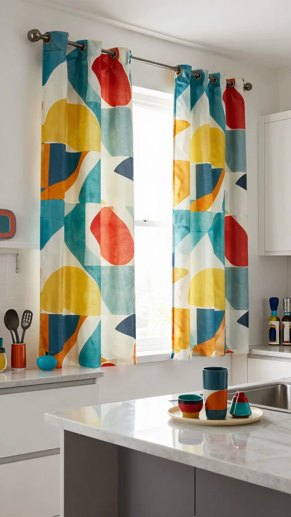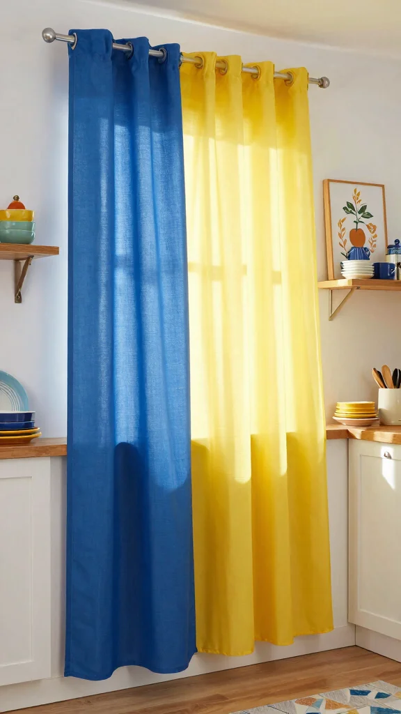 Fun fact: Color-blocked kitchen curtains use just 2–3 vibrant hues to transform a compact space. Mixing bold tones with contrast can visually widen the room and add playful energy. Pro tip: hang a simple rod for flexible layering, solo or stacked.