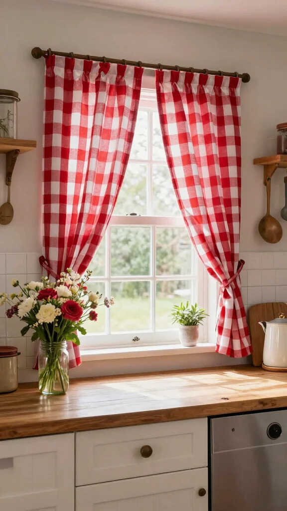 Capture the essence of the farmhouse aesthetic with classic checkered patterns in your kitchen curtains. These timeless designs evoke feelings of home and nostalgia, making your kitchen feel warm and inviting. Checkered curtains can beautifully complement rustic elements while adding a touch of charm.