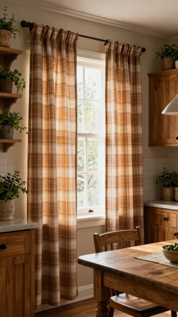 – Pair checkered curtains with rustic wooden elements for warmth