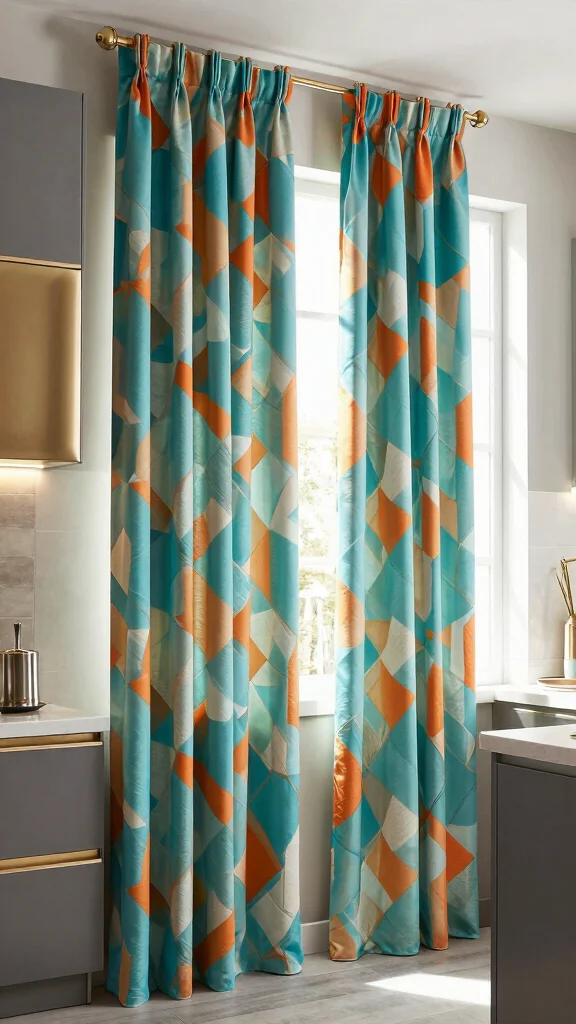 For a touch of contemporary elegance, geometric patterns can introduce a sophisticated edge to your kitchen. These striking designs add dynamic visual interest while maintaining a clean aesthetic that can enhance your modern decor. Geometric curtains can serve as eye-catching focal points, drawing attention and admiration.