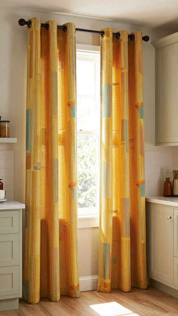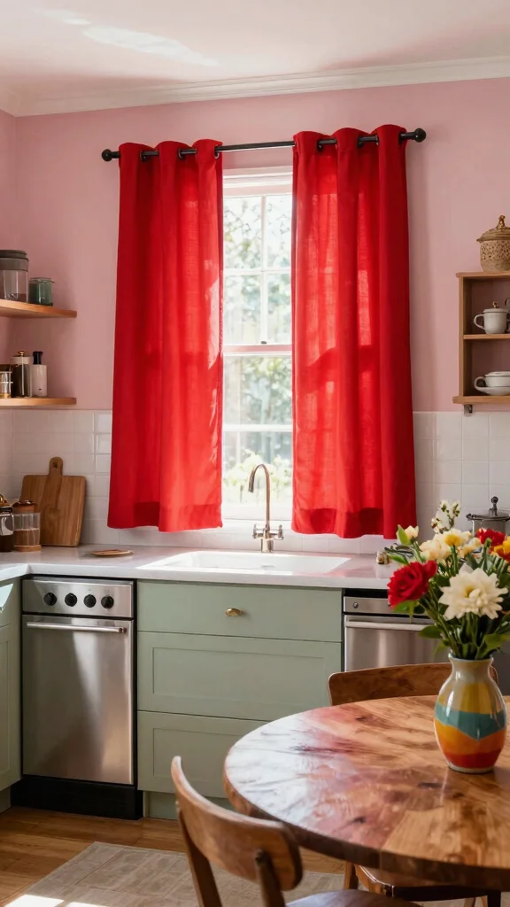 Bold colors in your kitchen curtains can uplift the entire room, making it a cozy haven for culinary creativity.
