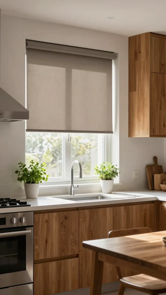 These blinds offer precise control over light and privacy, making them a practical choice for any kitchen. Available in various materials, including wood and faux wood, they can adapt to your style preferences with ease.