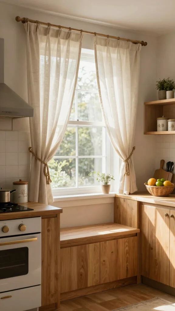 With simple tie-backs, your kitchen will feel more spacious and welcoming, perfect for gatherings and shared meals.