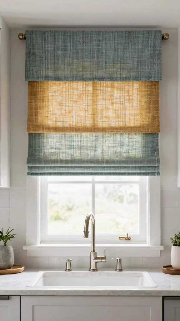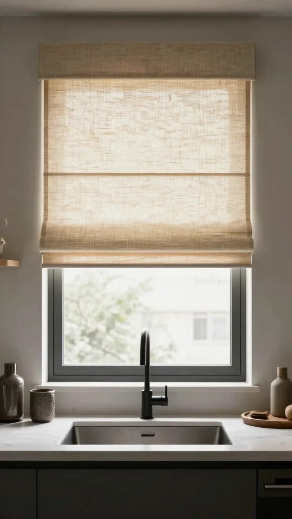 Natural fiber roller shades offer a clean, modern look while remaining eco-friendly. Made from materials like jute, grass, or bamboo, these shades elevate your kitchen’s aesthetic and functionality. Their easy operation allows you to control light levels effectively while enhancing style.