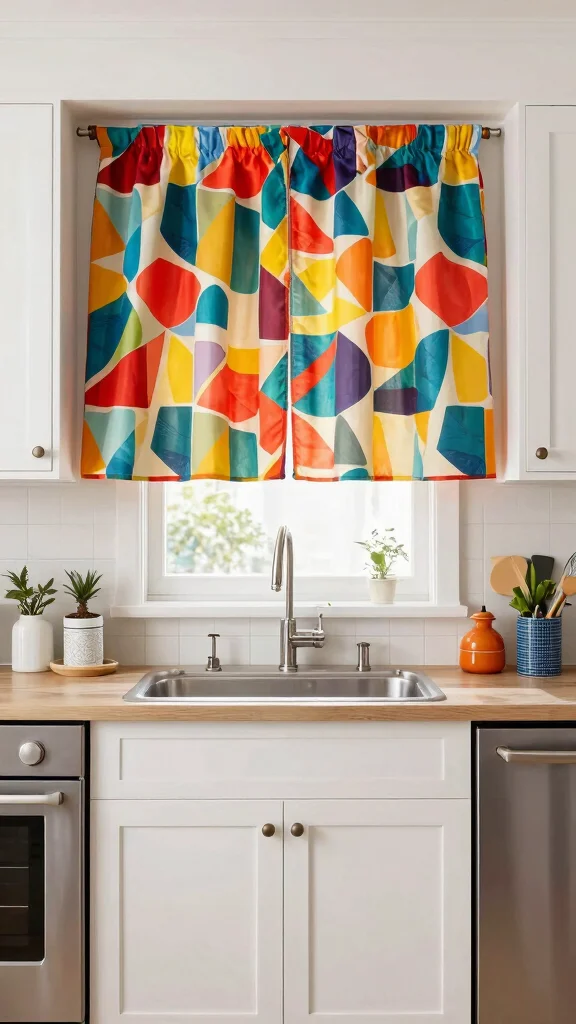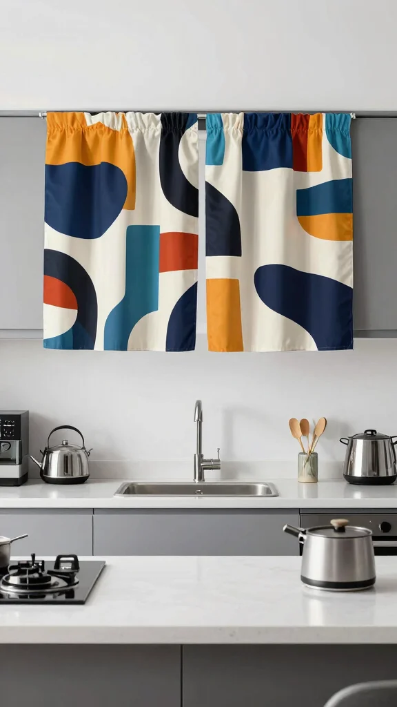 Graphic print curtains create a bold statement above your sink, adding a contemporary vibe to your kitchen. Featuring striking designs made from eco-friendly fabrics, these curtains serve as a focal point in eclectic or minimalist settings. They enhance visual appeal while providing privacy and light control.