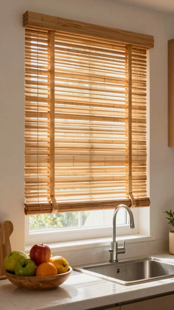 The natural tones of bamboo work harmoniously with various kitchen styles, from modern to rustic. Layering bamboo blinds with sheer curtains can add depth and interest to your window treatments.