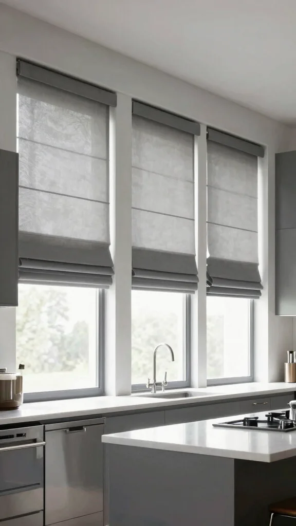 Available in various colors, pleated shades can complement your kitchen’s design seamlessly. Their sleek appearance offers a polished look while ensuring privacy, making them ideal for any setting. Check out local home stores for versatile options that fit your budget.