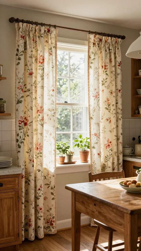 Vintage tablecloth curtains add a playful and nostalgic element to your kitchen decor. Upcycling old tablecloths into curtains not only adds character but also supports sustainability by reducing fabric waste. Their unique patterns can create a charming atmosphere perfect for family gatherings.