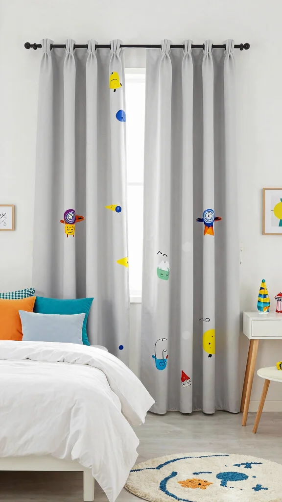 Inject personality into your bedroom with light grey curtains featuring playful prints. This fun approach allows you to express your style while preserving an overall calming effect. Imagine curtains adorned with cheerful florals or lively stripes, creating a vibrant atmosphere that feels inviting and cozy.To implement this look, choose patterns that harmonize with your existing decor. Balancing printed curtains with solid furnishings will keep the overall look grounded. Incorporating accessories in similar colors will help tie the room together and enhance the playful vibe.Consider these implementation tips for a lively design: