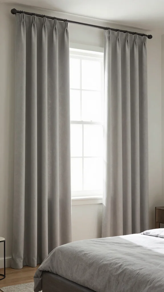 Finally, ensure your light grey curtains complement your bedroom’s overall color palette. Light grey blends beautifully with other neutral colors, making it easy to pair with pastels or even bold colors. This creates a cohesive look that can enhance the calming atmosphere of your space.