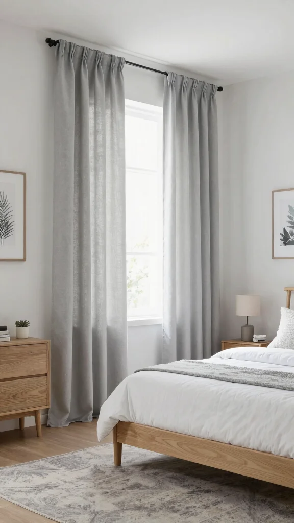 Pro tip: The light grey curtains bedroom vibe comes alive when paired with warm wood furniture and thriving greenery. Keep textures simple—stone accents or botanical prints reinforce the natural vibe, while breathable layers keep small spaces airy and serene.