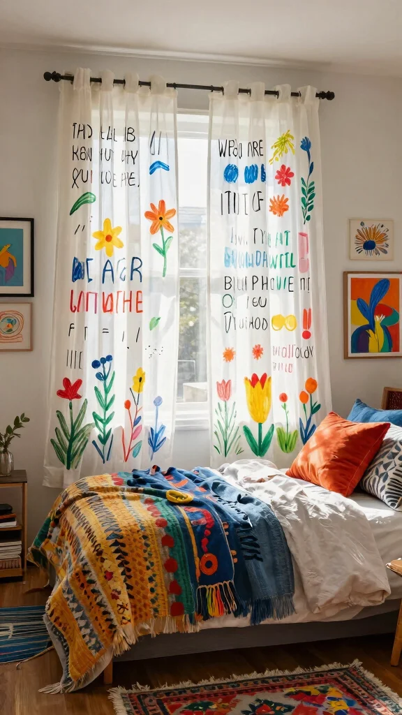 You could also incorporate your favorite quotes or images, ensuring your curtains are a genuine reflection of your personality. Explore budget-friendly options by sourcing materials locally or repurposing existing fabrics to create your personalized look.