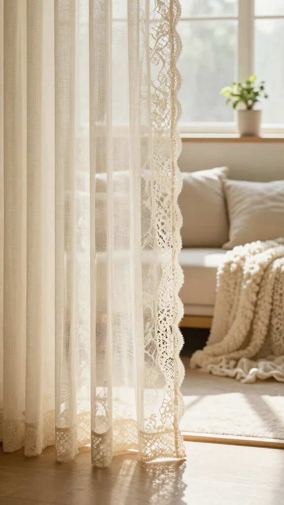 Sometimes I pair sheer curtains with a few delicate beads and lace trims, and the room suddenly feels softer and brighter. Keep the embellishments subtle for a refined sheer curtains bedroom aesthetic that still reads calm and cozy.