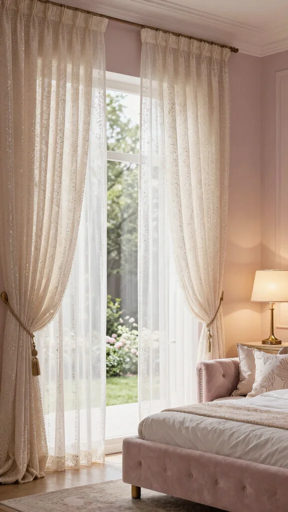 When choosing embellished sheers, opt for subtle accents for an understated elegance. Pair them with simpler decor to allow the curtains to shine as a statement piece, making your bedroom feel refined and stylish.