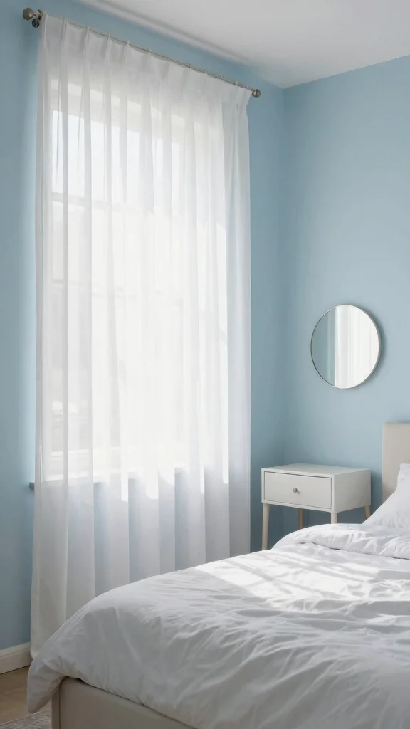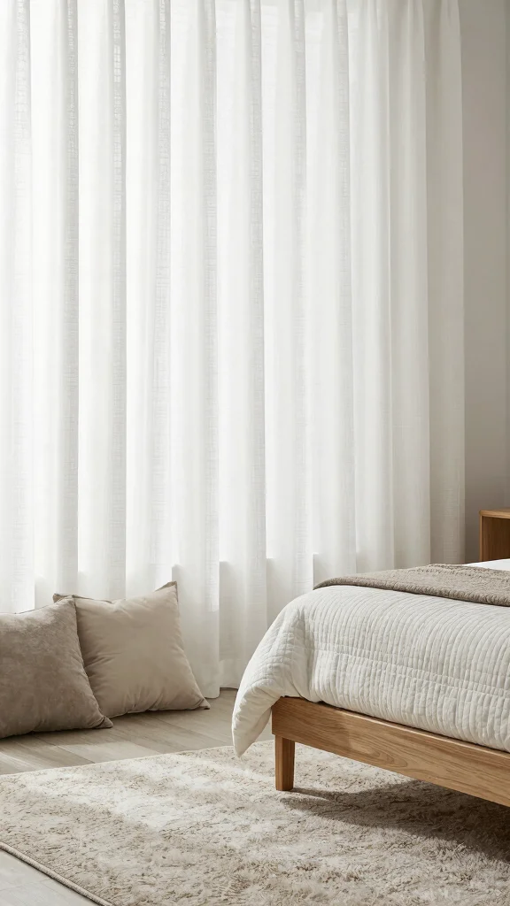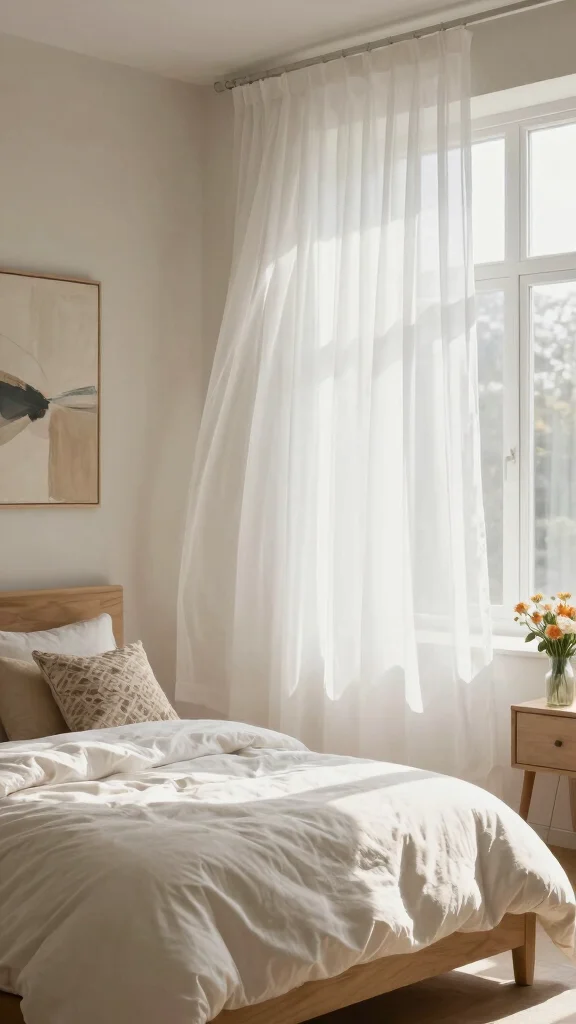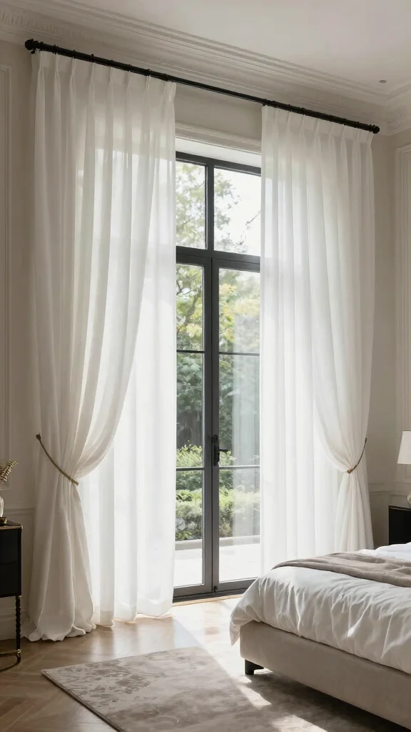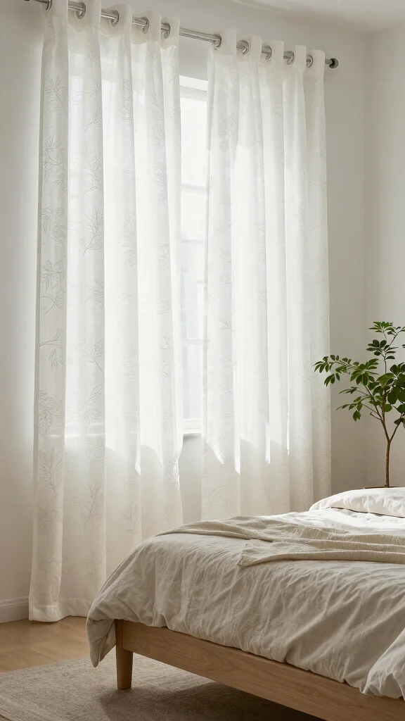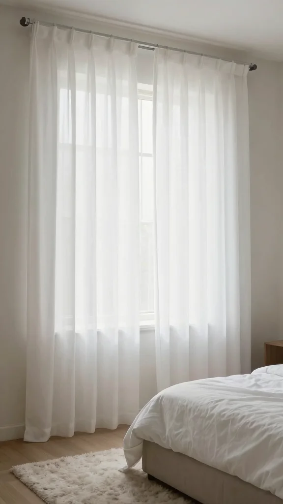Sheer white curtains can bring a light and airy feel to your bedroom. Their delicate fabric softly filters sunlight, creating a gentle glow that brightens up your space without feeling heavy. Perfect for smaller rooms, they enhance the decor while allowing natural light to shine through. Try pairing these curtains with natural wood elements or soft pastel colors for a serene atmosphere.