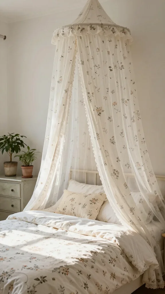 Create a DIY floral bed canopy for an extra touch of romance and whimsy in your bedroom. This simple project transforms your bed into a dreamy retreat, enhancing that cozy cottage feel. Use soft, sheer fabric in a white or floral print to create a whimsical canopy that drapes gracefully from the ceiling or a curtain rod. This addition not only enhances aesthetics but also provides a comforting atmosphere, making your bed the perfect sanctuary.