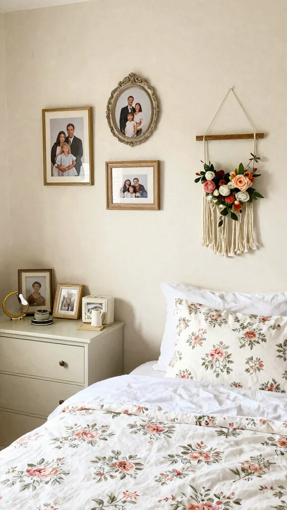 Personalizing your space with floral decor creates a warm and inviting atmosphere. Whether it’s framed family photos in floral frames or DIY projects incorporating floral elements, adding personal touches makes your bedroom truly yours. Items that resonate with your memories enhance the cozy feel of your space, adding emotional value.