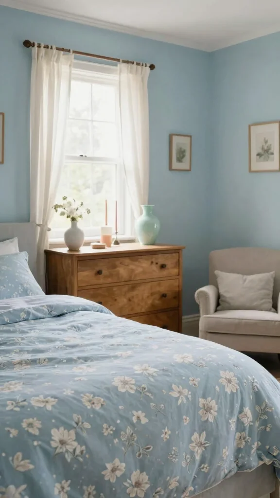 Consider using wallpaper on a single accent wall for depth without overwhelming the room. Soft, natural tones maintain that peaceful atmosphere.