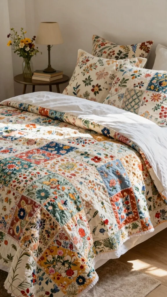 “Fun fact: Vintage floral quilt sets rise in popularity by 40% each autumn, turning white floral bedding into instant cottage charm. Layer them with floral pillows for warmth and a cozy, nostalgic look that invites you to snuggle up and unwind.”