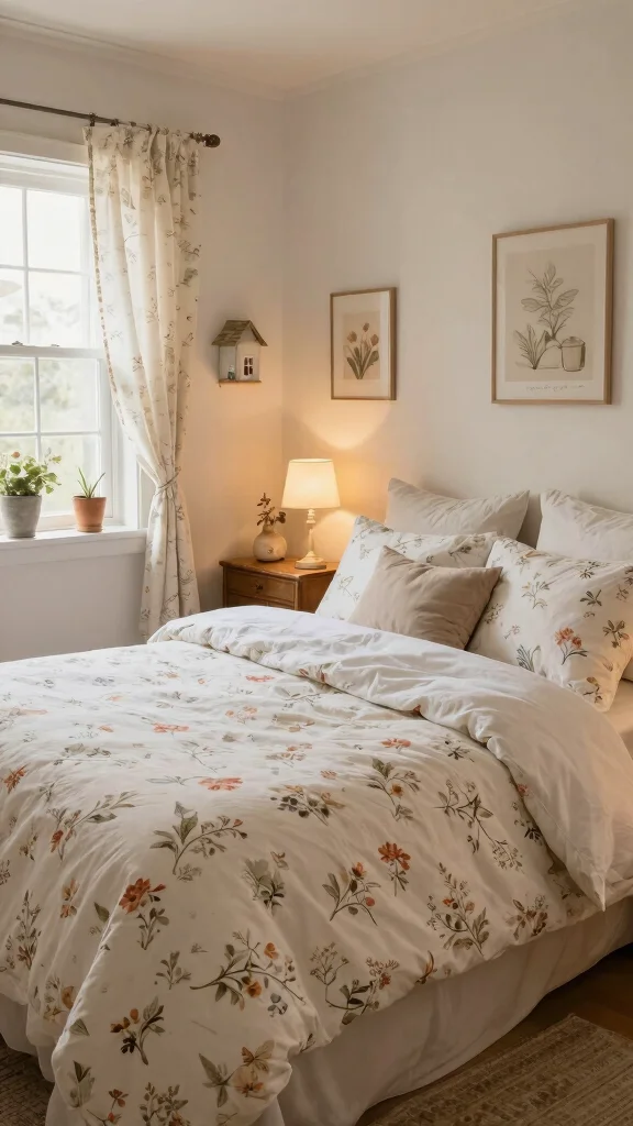 Fun fact: beds with delicate blossom duvet covers can boost perceived coziness by up to 40%. Pair white floral bedding with soft quilt textures and breathable fabrics for a restful night’s sleep—your cottage vibe will feel instantly cozier.