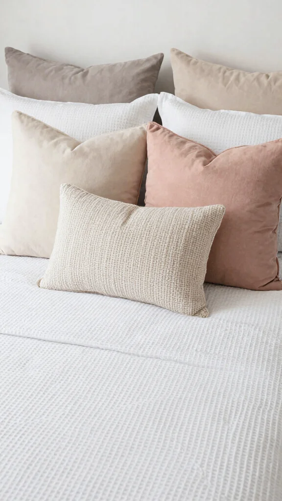To achieve a stunning look, combine different textures like velvet and linen for a tactile experience. Position larger pillows at the back and smaller ones in front to create a layered effect. Adding pillows with subtle patterns, like stripes or florals, can maintain a minimalist aesthetic.