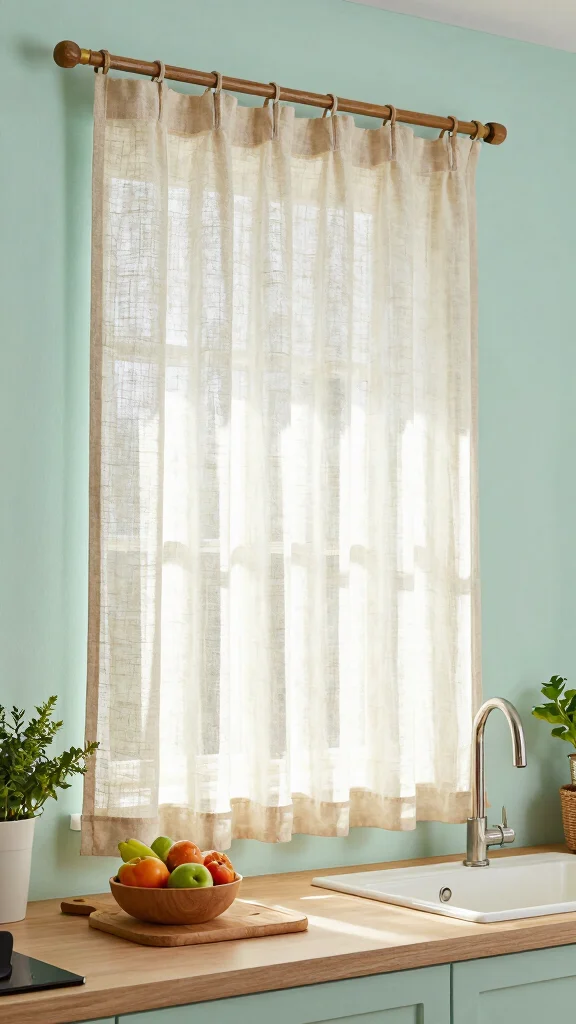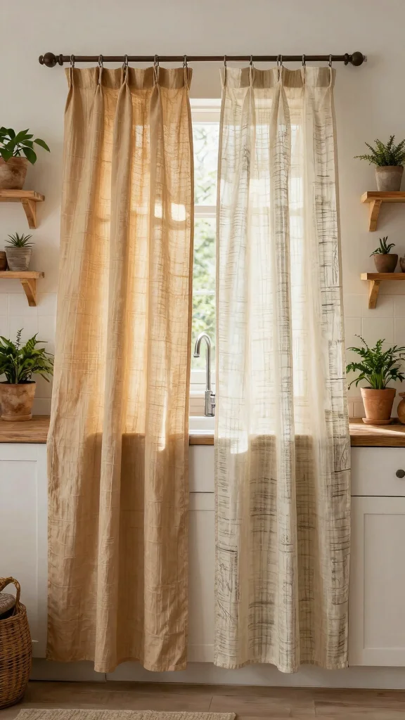 Sheer linen panels bring an ethereal quality to your kitchen, allowing soft light to filter in while maintaining your privacy. The natural fibers add texture, creating a warm and inviting atmosphere perfect for any space. Imagine these delicate curtains framing a sunny window, paired with a rustic wooden rod that enhances their charm.