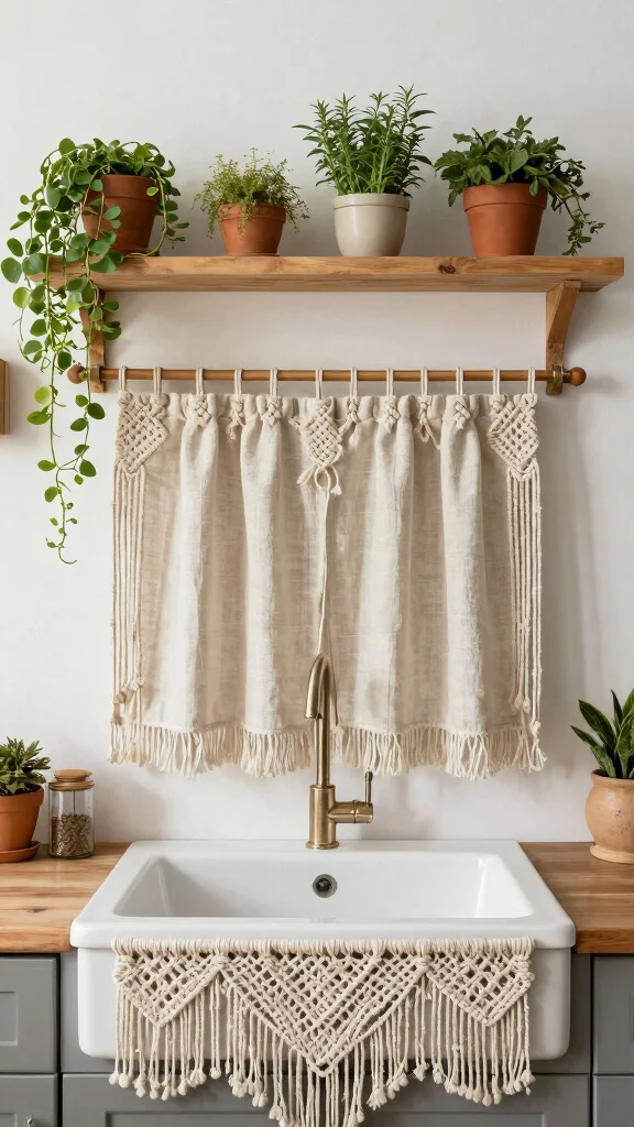 Macrame curtain tiebacks prove eco-friendly decor can be stylish and practical. When you pair handcrafted texture with window above kitchen sink curtains, you gain a charming focal point and a simple, sustainable way to keep things tidy.