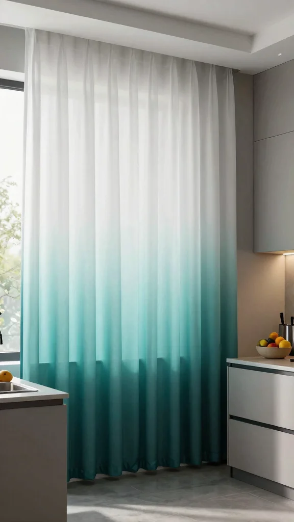 Ombre curtains are a stunning way to introduce gradient hues into your kitchen, creating a chic and modern effect. These curtains transition seamlessly between colors, allowing for beautiful light filtration while enhancing your decor. Imagine soft blues fading into whites, adding a sophisticated touch to your cooking space.