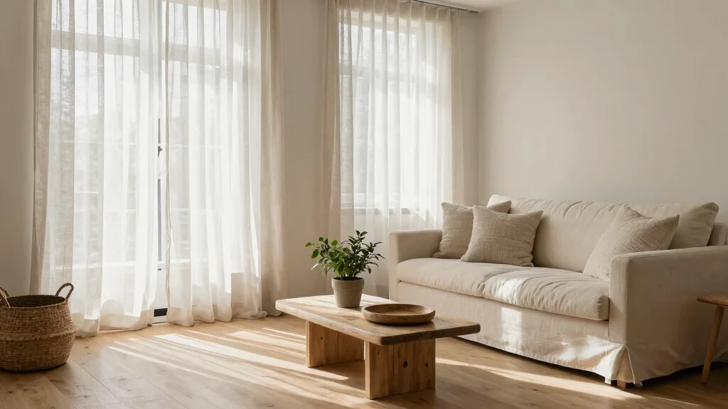 Balance privacy and light by layering eco-friendly window treatments. Start with a light-filtering fabric like organic cotton or linen to soften glare while keeping the view partially open.